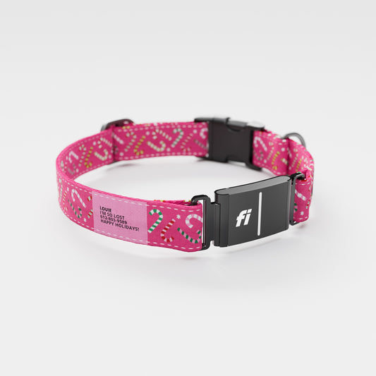 Fi GPS Included Candy Canes Pink Everyday Collar (6 month subscription)